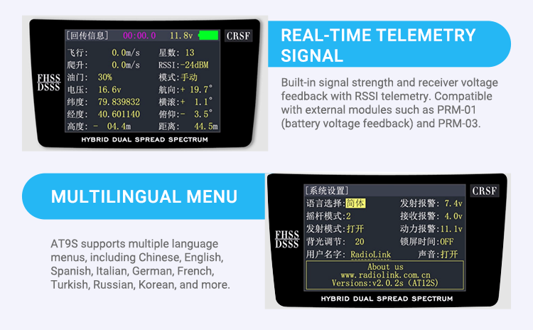 AT9S ProOptional DSSS&FHSS/CRSF Protocols